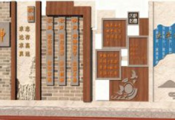 集中展現了傳統禮儀、經典典籍(如《論語》)等文化元素,還有 “禮儀” 等字樣,傳遞出對中華傳統禮儀文化、儒家文化的尊崇與弘揚,旨在營造富有文化底蘊的氛圍,讓人們感受傳統文化的熏陶。采用了竹簡與浮雕結合的形式,雕刻有古代人物場景、經典語句等,將文字與浮雕圖案有機結合,布局規整且內容豐富,通過直觀的雕刻畫面與文字,生動地展現傳統文化內容,具有較強的文化傳播與教育意義。