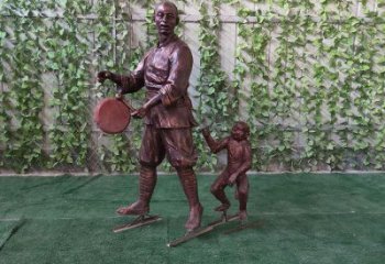 仿銅民俗人物情景雕塑——耍猴玻璃鋼雕塑