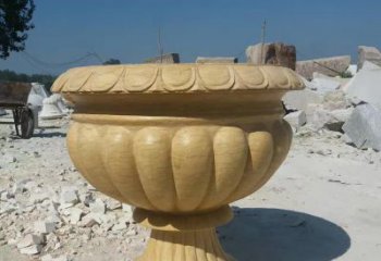 天然大理石雕刻花盆,為酒店裝飾添彩