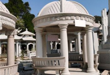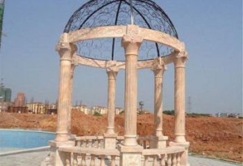 美麗而典雅的歐式大理石雕塑涼亭,為觀賞晚霞景觀而設計