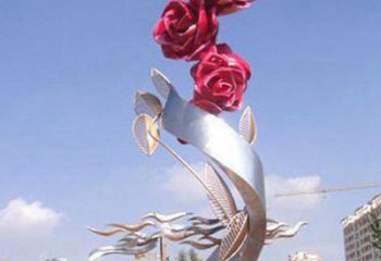 紅色玫瑰不銹鋼創意雕塑——美化廣場,增添驚喜