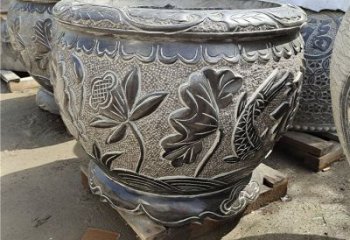 精美大理石浮雕鯉魚荷花舊庭院圓形水缸