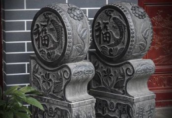 古典巴洛克風格石雕黑色大理石門口抱鼓