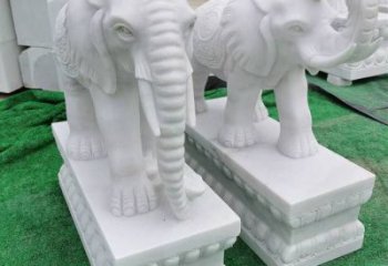 漢白玉石雕小象完美裝點公司庭院門口