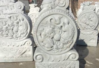 雕刻精美的大理石門口抱鼓雕塑
