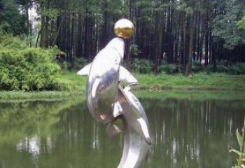 不銹鋼海豚雕塑,為小河邊增添游玩樂趣