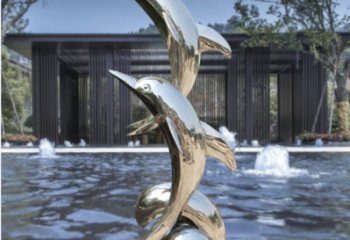 精美不銹鋼海豚雕塑,為您的戶外廣場增添水景鏡面美感