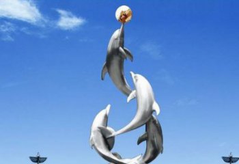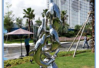 精美不銹鋼海豚雕塑,點綴別墅庭院