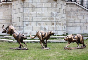 公園仿真銅創意鑄造噴漆金錢豹雕塑