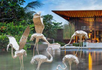 不銹鋼火烈鳥雕塑,完美擺放于室內外庭院