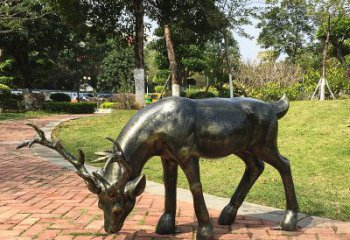 玻璃鋼制仿銅小鹿擺件,點綴戶外園林景觀