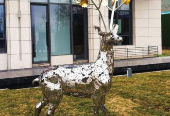 不銹鋼戶外創(chuàng)意鏤空低頭吃草鹿雕塑