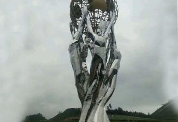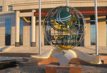 大型不銹鋼鏤空地球儀組合景觀雕塑