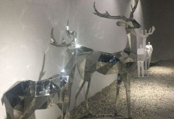 梅花鹿幾何不銹鋼雕塑
