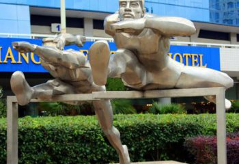 高科技不銹鋼跨欄雕塑裝置,傳承體育運動主題人物