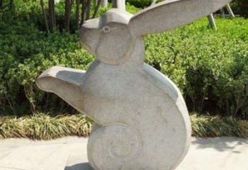 步行街白色石雕兔子雕塑