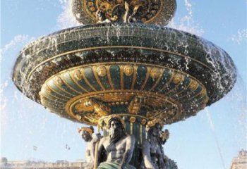 精美歐式西方人物彩繪漆金噴泉青銅雕塑