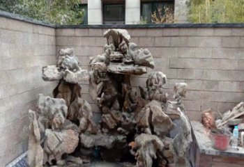 私家庭院小型池塘靈璧石假山景觀設(shè)計(jì)