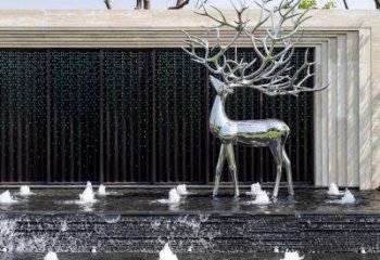 不銹鋼雕刻梅花鹿噴泉,打造公園景區創意噴泉