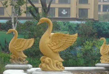 玻璃鋼仿銅天鵝噴水小區(qū)園林水池擺件是一款以玻璃鋼為主要材料,仿銅為外觀,噴水為功能,天鵝為圖案的小區(qū)園林水池擺件。