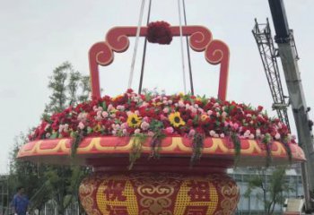 玻璃鋼彩繪普天同慶萬眾一心大花籃雕塑