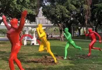 雖然天氣悶熱,鐵藝人物跑步雕塑早已濕透,但怎么也擋不住人們對跑步的熱愛,大家互相鼓勵、加油打氣,所有隊員都到達了終點。