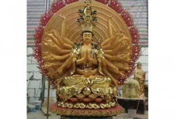 鎏金千手觀音大型雕塑,源自古老的佛教傳統,象征著慈悲、智慧和力量,是一件精美絕倫的藝術品,可以在寺廟、景區等場所裝飾,也可以收藏在家中,令人醉心。
