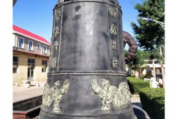 仿古青銅大型銅鐘雕塑生動(dòng)準(zhǔn)確的造型、深淺凹凸具有寫實(shí)技巧的浮雕表現(xiàn)。