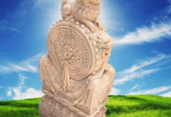 有權(quán)有勢的大戶門墩雕塑講究在門前擺上一對(duì)漢白玉雕的大石獅子,通常是雄獅居左,右爪下踩著繡球,被稱為獅子滾繡球。