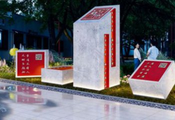 該景觀雕塑巧妙融合實用與文化傳承。采用石材打造坐凳,石材質樸且富有質感,契合景觀雕塑自然、沉穩(wěn)的氣質,既為人們提供休憩之處,又成為公共空間的藝術點綴。將 “禮”“讓”“義” 等代表中華傳統(tǒng)美德的文字,以發(fā)光形式呈現(xiàn)于石材坐凳之上,使坐凳不再只是簡單的休憩設施,更成為傳遞文化精神的載體。當人們落座于這些帶有美德文字的坐凳,既能在舒適中感受景觀之美,又能潛移默化地接受傳統(tǒng)美德的熏陶,讓文化傳播與日常休憩場景有機結合,營造出富有詩意與人文關懷的公共空間氛圍。