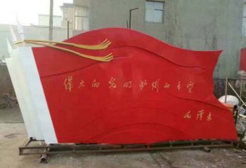 這座雕塑以紅色旗幟與革命浮雕為核心元素,采用不銹鋼等金屬材質打造,是一座兼具藝術性與精神性的景觀雕塑。它通過硬朗的旗桿、動感的紅旗與細膩的基座浮雕,凝練了革命先輩的奮斗歷程與新時代的奮進精神,既以現代金屬雕塑的質感彰顯視覺沖擊力,又以紅色主題的深刻內涵成為傳承信仰的精神地標。