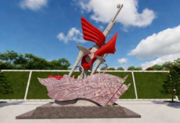這座雕塑以 “紅色傳承與時代奮進” 為核心主題,是一座兼具精神象征與藝術美感的景觀雕塑。它以不銹鋼雕塑為主要表現形式,融合了金屬雕塑的現代質感與紅色文化的厚重底蘊。雕塑主體由高聳的不銹鋼旗桿、飄揚的紅色金屬旗幟與浮雕基座構成。旗桿以硬朗的幾何線條向上延伸,象征著革命精神的挺拔不屈;紅色旗幟采用不銹鋼鍛造并施以烤漆工藝,褶皺起伏間兼具視覺張力與飄揚的動感,既還原了紅旗獵獵的生動形態,又通過金屬材質的耐久性,寓意紅色精神永不褪色。作為景觀雕塑,它不僅是視覺焦點,更通過空間層次與色彩對比,與周邊的綠植、廣場環境有機融合,成為傳遞紅色文化的精神地標。整體設計將金屬雕塑的工業質感與紅色主題的精神內核相統一,以不銹鋼雕塑的現代工藝承載厚重的歷史記憶,讓觀者在視覺震撼中感受信仰的力量,實現藝術美感與精神價值的雙重表達。