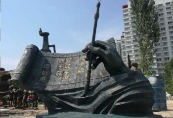 景觀雕塑以一只遒勁的石手緊握展開(kāi)的 “法卷” 為主體,法卷上鐫刻 “學(xué)法尊法、守法用法”,整體采用石材雕刻,造型莊重,將法治理念具象化,既彰顯法律的權(quán)威,又傳遞公平正義的精神,是兼具藝術(shù)美感與教育意義的法治主題石雕。