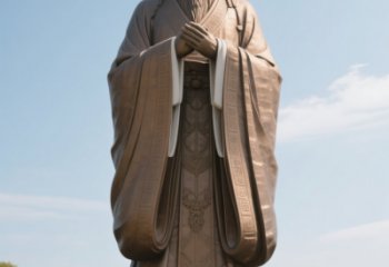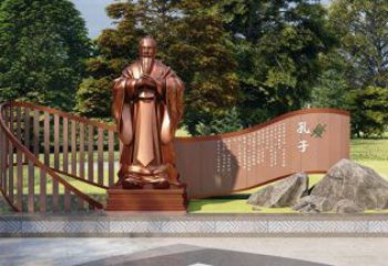本作品為景觀雕塑范疇下的人物雕塑,采用鍛銅雕塑工藝塑造,以中國古代思想家、教育家孔子為核心原型,旨在打造承載儒家文化精神的公共藝術(shù)載體。在造型上,雕塑選取孔子 “行教” 經(jīng)典姿態(tài):雙手疊握于胸前,呈揖禮之態(tài),既體現(xiàn) “克己復(fù)禮” 的儒家倫理,也傳遞出謙和包容的治學(xué)態(tài)度。人物面容慈祥,目光深邃,長髯飄逸,生動還原了孔子作為 “萬世師表” 的精神氣質(zhì);衣紋采用垂墜式線條,輔以回紋、云紋等傳統(tǒng)紋樣鍛刻,既符合古代服飾規(guī)制,又通過金屬質(zhì)感強化了雕塑的厚重感與歷史感。材質(zhì)選擇鍛銅,既保證了戶外環(huán)境下的耐腐蝕性與耐久性,又能通過鍛打工藝呈現(xiàn)細(xì)膩的肌理層次,讓人物神態(tài)與服飾細(xì)節(jié)更具表現(xiàn)力。雕塑置于開闊的園林景觀中,與周邊綠植、建筑形成呼應(yīng),成為連接歷史與當(dāng)代、文化與公眾的視覺紐帶,既滿足了景觀美學(xué)的需求,也實現(xiàn)了文化傳播的功能,讓觀者在駐足瞻仰中感受儒家文化的深厚底蘊與人文溫度。