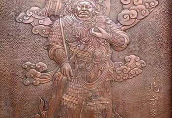 巨型景觀天王雕塑為四天王座下三十二將之首,也是大家所熟悉的佛教護法神。中國佛教寺院中,彩繪景觀天王雕塑常威武地立於最靠近寺院門口的四天王殿內,面向著寺院,以守護伽藍。景觀天王雕塑大多為身穿甲胄的雄壯武將,手持金剛杵,或以杵柱地,或雙手合十,將杵擱於肘間。